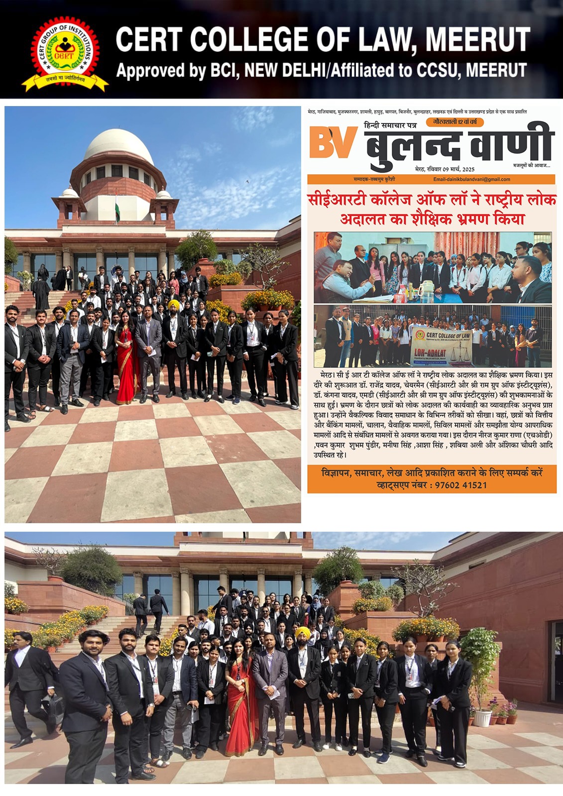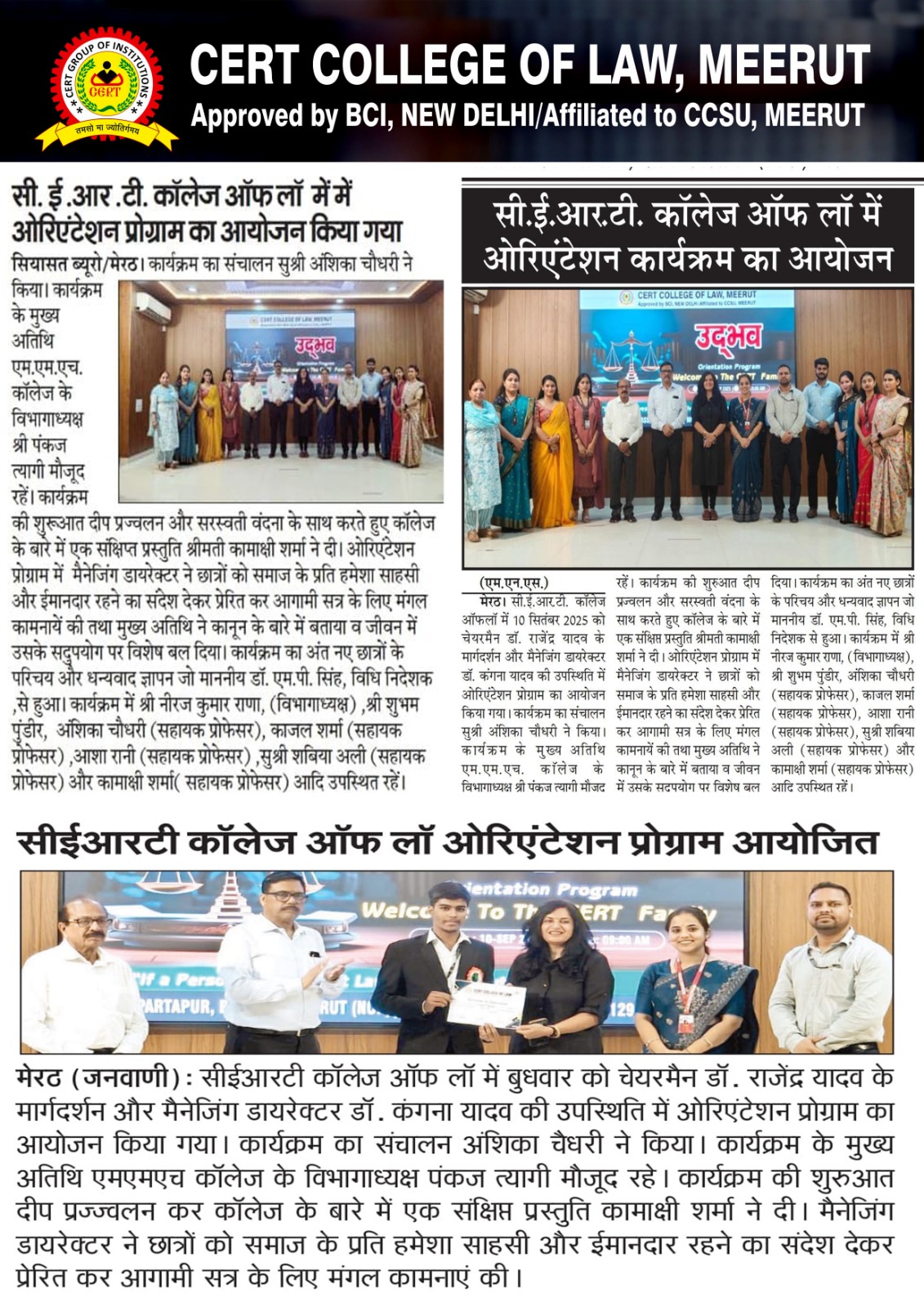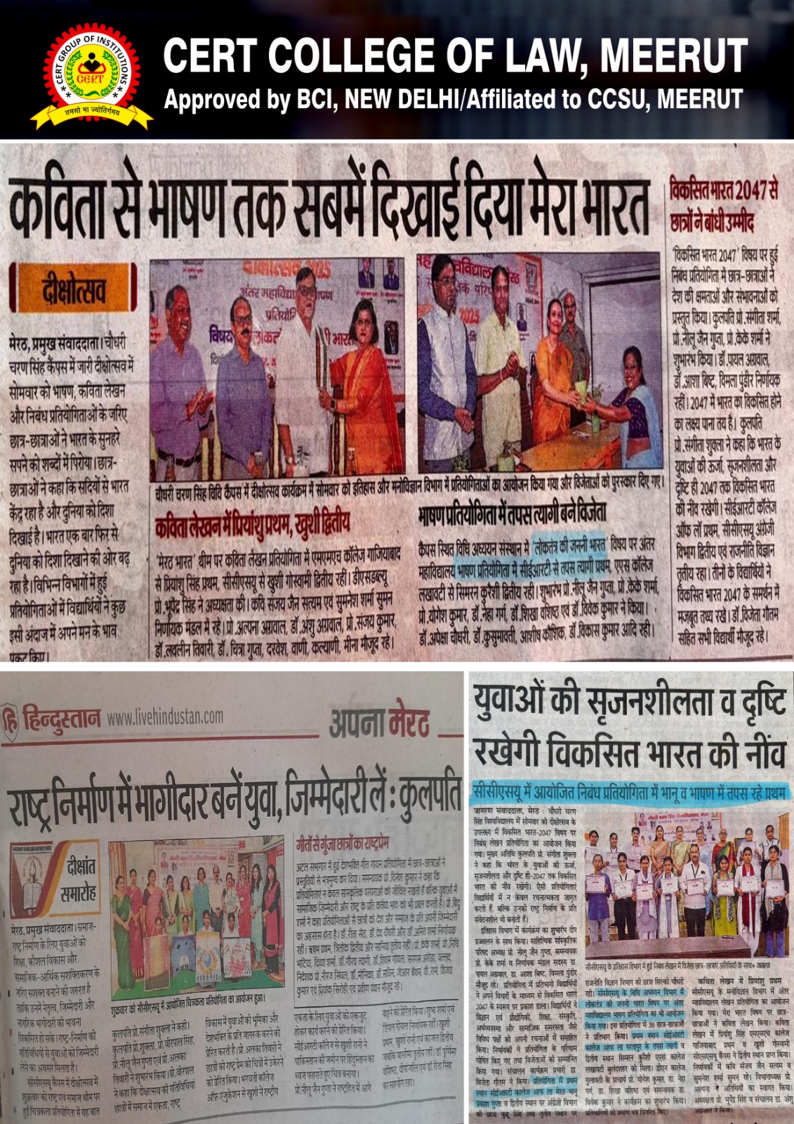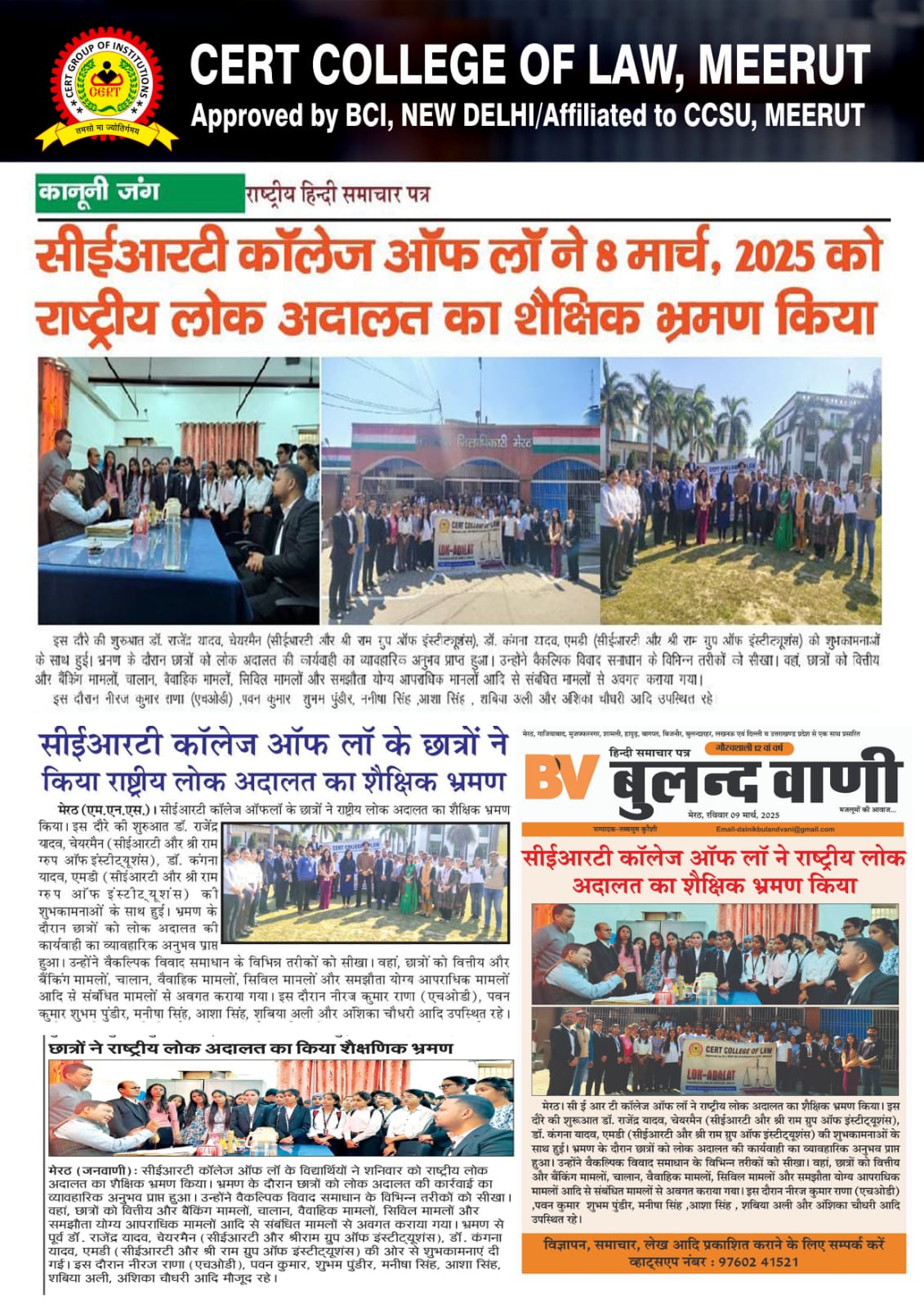 CERT College of Law has consistently earned recognition in leading news platforms for its excellence in legal education, innovative teaching methods, and impactful student initiatives.