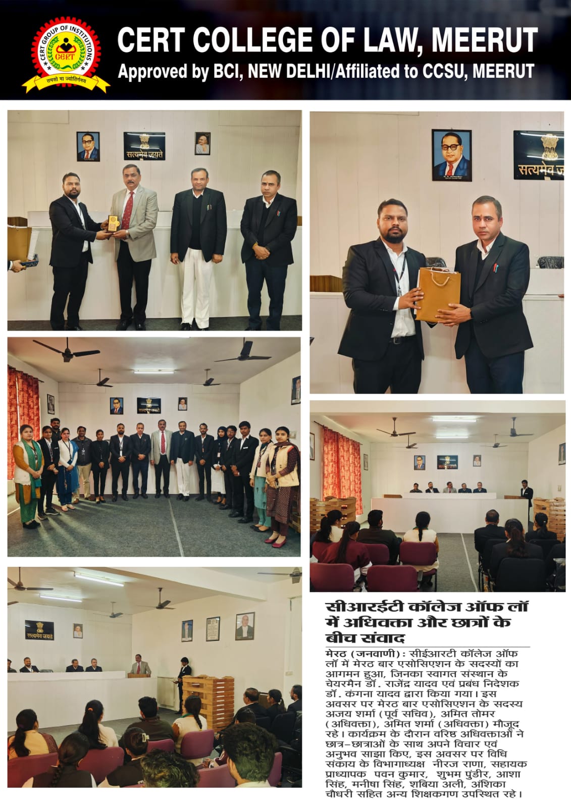 At CERT College of Law, we are committed to excellence in legal education through a strong blend of academic knowledge and practical exposure. Recognized as a leading law college in Meerut and NCR, we offer a career-focused curriculum under AKTU with expert faculty guidance.